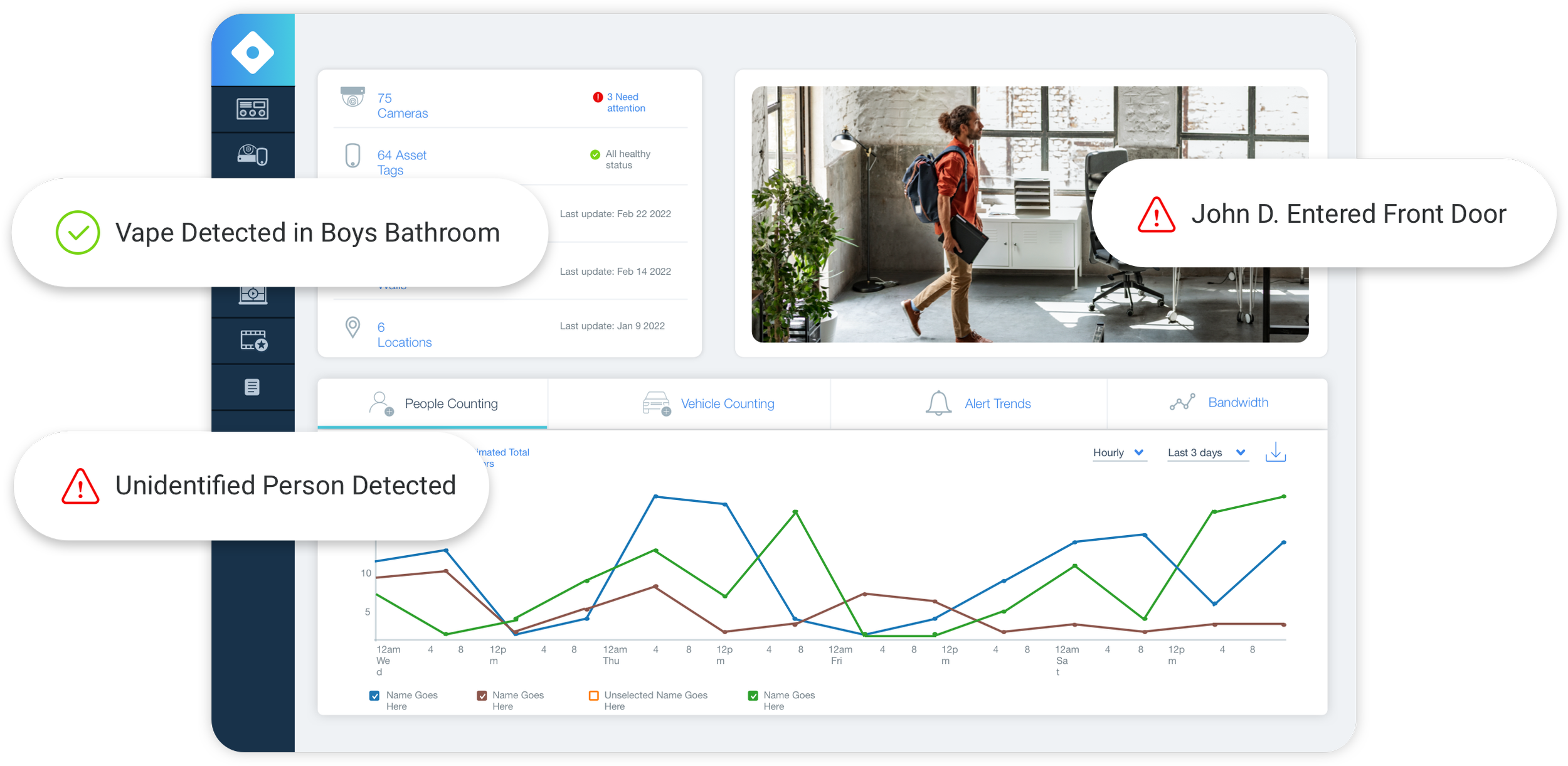 Take control of your facility from anywhere with cloud-based security systems. Manage access to buildings and individual doors using your mobile devices, receive instant notifications of guests, and interact seamlessly with visitors through integrated video and two-way audio features.